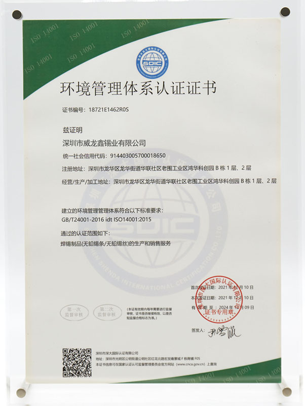 質(zhì)量保障 > ISO環(huán)境證書(shū)